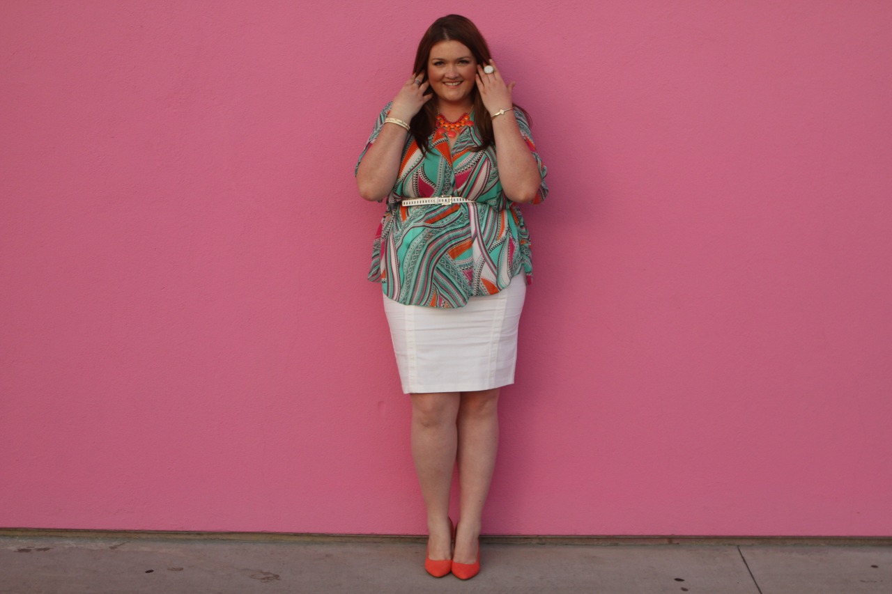 I’ve been working with Stylzoo lately to put my fashionable take on a few of their pieces they recently sent me. I immediately loved the color and versatility of this Geometric Kimono which can be worn open or belted like I did. I paired it with my white skirt and grapefruit colored pumps for that extra pop. You can shop my closet here where this top is currently available (I just launched my shop today!).