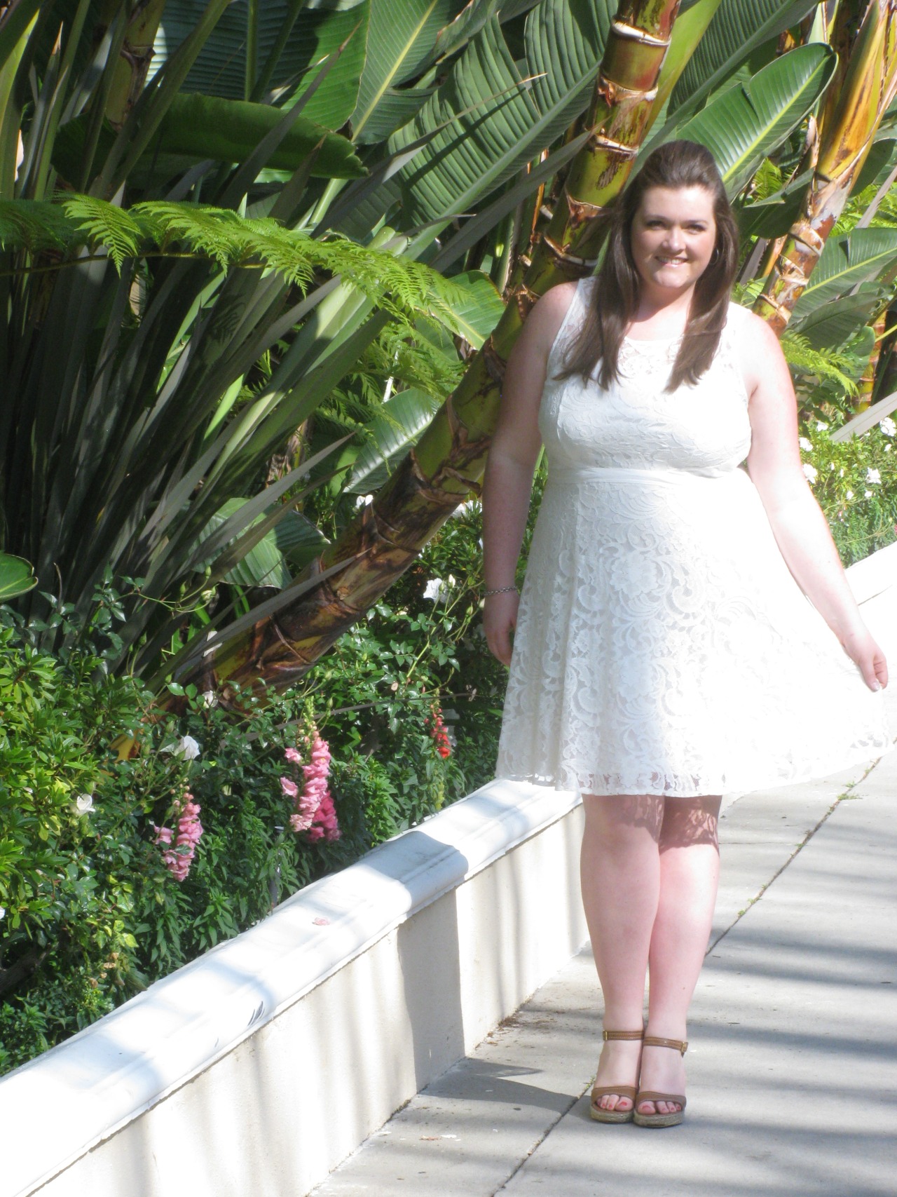 When recently in NYC I hit up Macy’s in Herald Square and found this cream colored lace dress by American Rag. I kept it chic and simple with silver hoops and bracelet. Shoes are by Via Spiga.